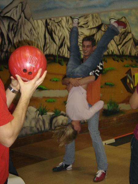 needs to score through the guys leg, upside down! 69 Bowling!