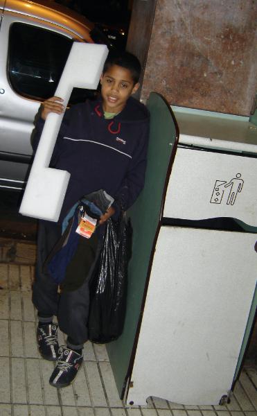 This kid entertained us with a styrophone piece which looked like a phone,