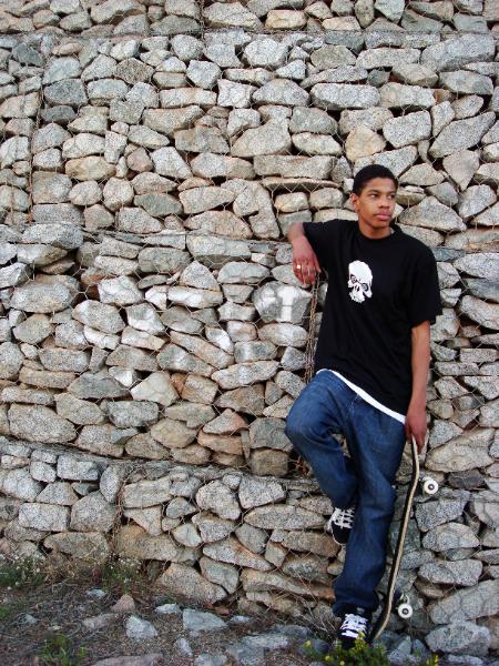Malcolm started to ride his board without a Nose and a Tail.