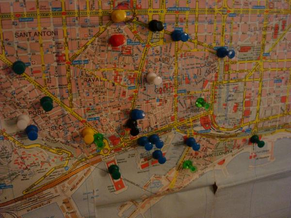 I bought this Pin Board a month ago to pin in the Spots on this Barcelona Map. Different Colors