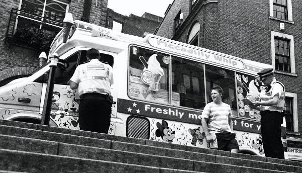 who i guess tried to steal something from the Ice cream Van, one saw me taking a picture and walked toward me but
