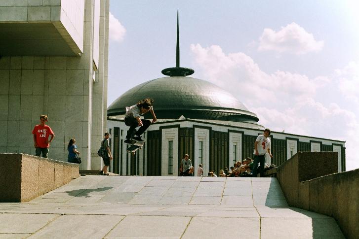 We went to Victory Park! Main spot in Moscow! John Tanner easy kickflipping into the bank!