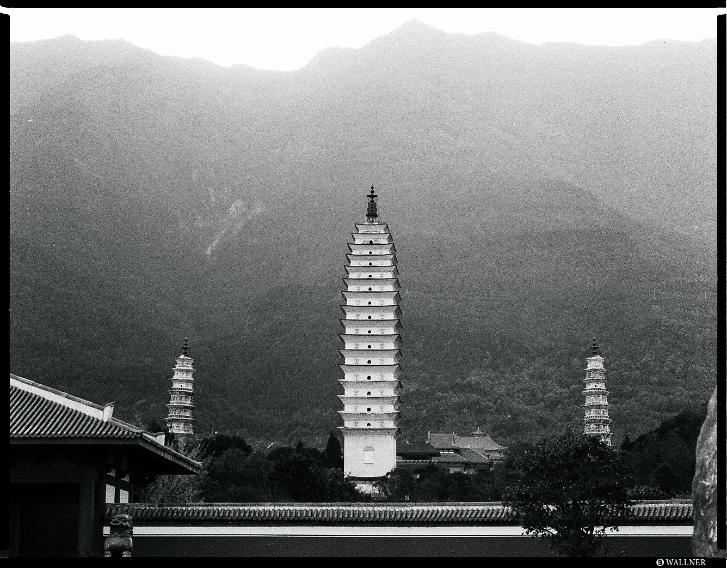 This is the new town of Dali, the Three Pagodas were located in the old town of Dali.