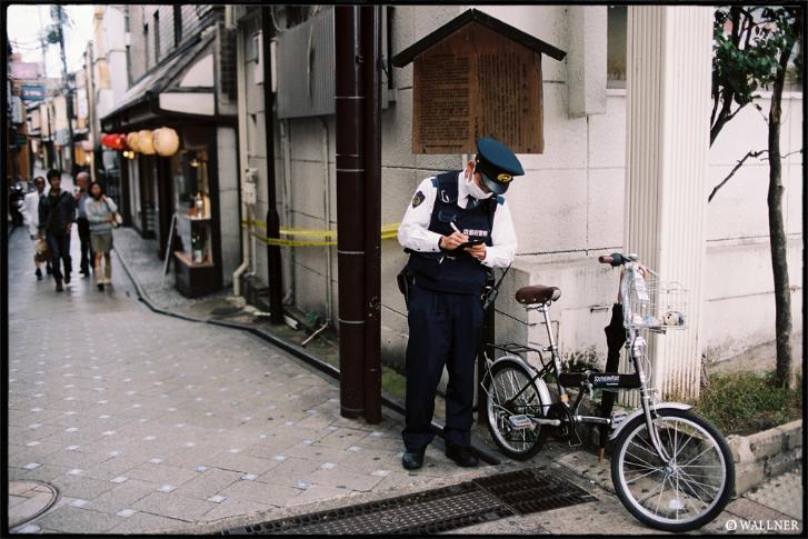 As traditional Kyoto might be, it won't scare of a policeman handing out a ticket to a bicycle parked in the wrong