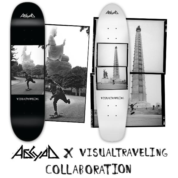 | Visualtraveling is proud to present a pair of Absurd x Visualtraveling collaborative skateboards. Since Visualtraveling’s early projects, Russia and our Russian friends such as Kirill Korobkov have greatly influenced the way we successfully navigated across a vast Eurasia from steppe to sea. When asked to collaborate on a pair of image-laden boards, the answer was a resounding “да” (“yes”)! Lev Maslov at Absurd Skateboards left the photo selection up to me. For the street board, I choose Michael Mackrodt pushing in Foshan, China with a massive Buddha statue looming in the background. This image both celebrates and encapsulates the half-decade of lines I have filmed with Michael, himself an avid global explorer. For the cruiser board, I selected Kenny Reed, skateboarding’s iconic traveler, doing what was very likely the first documented 360 flip amidst the sharp socialist-realist angles of Pyongyang, North Korea. Both images are evocative of what Visualtraveling represents to me & I am thrilled for the opportunity to present these skateboards to you. |
